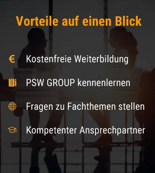 Sie bekommen durch unsere kostenlosen Webinare einen grundlegenden Einblick in breit gefächerte Themengebiete. Dabei bekommen Sie unter anderem Grundlagenwissen, Definitionen, festgelegte Regularien und Abläufe, aber auch ganz spezielle Funktionen vermittelt. Durch den Einstieg mit unseren Webinaren fällt es Ihnen in Zukunft leichter, erneut an die einzelnen Themen anzuknüpfen und sich weiteres Wissen anzueignen. Die Webinare dauern je nach Thema zwischen 1-2 Stunden. Erhalten Sie in kurzer Zeit einen umfassenden Einblick in komplexe Themengebiete der PSW GROUP, PSW TRAINING und PSW CONSULTING.